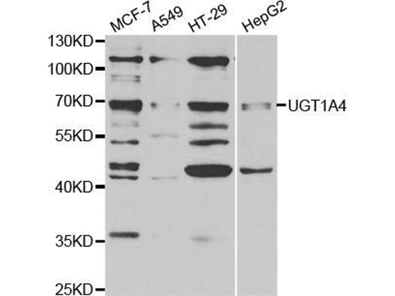 This Rabbit Polyclonal antibody specifically detects UGT1A4 in WB and IHC. It exhibits reactivity toward Human and Mouse.