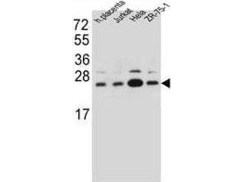 - This antibody is purified through a protein A column, followed by peptide affinity purification.