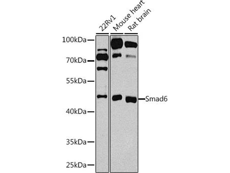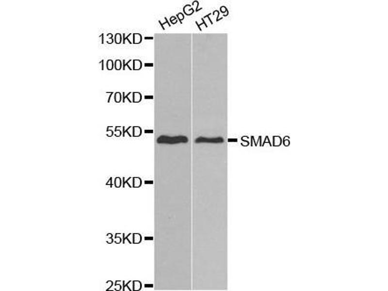 - The protein encoded by this gene belongs to the SMAD family of proteins, which are related to Drosophila 'mothers against decapentaplegic' (Mad) and C. elegans Sma. SMAD proteins are signal transducers and transcriptional modulators that mediate multiple signaling pathways. This protein functions in the negative regulation of BMP and TGF-beta/activin-signalling. Multiple transcript variants have been found for this gene.,SMAD6,AOVD2,HsT17432,MADH6,MADH7,Epigenetics & Nuclear Signaling,Transcription Factors,Signal Transduction,Cell Biology & Developmental Biology,TGF-b-Smad Signaling Pathway,Stem Cells,Cardiovascular,Heart,Cardiogenesis,Hypertrophy,SMADs,SMAD6