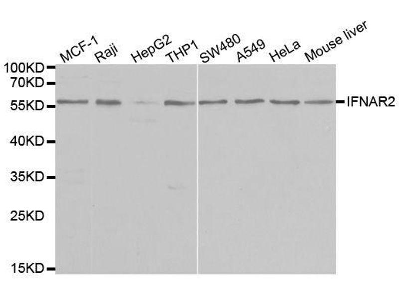 The Rabbit Polyclonal anti-IFNAR2 antibody has been validated for WB, IHC and IF. It is suitable to detect IFNAR2 in samples from Human.
