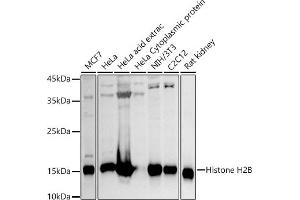 Histones are basic nuclear proteins that are responsible for the nucleosome structure of the chromosomal fiber in eukaryotes. Two molecules of each of the four core histones (H2A, H2B, H3, and H4) form an octamer, around which approximately 146 bp of DNA is wrapped in repeating units, called nucleosomes. The linker histone, H1, interacts with linker DNA between nucleosomes and functions in the compaction of chromatin into higher order structures. This gene encodes a replication-dependent histone that is a member of the histone H2B family, and generates two transcripts through the use of the conserved stem-loop termination motif, and the polyA addition motif. The protein has antibacterial and antifungal antimicrobial activity.,GL105,H2B,H2B.1,H2BFQ,H2BGL105,H2BQ,Histone H2B,HIST2H2BE,Epigenetics & Nuclear Signaling,Histones,Histone H2B