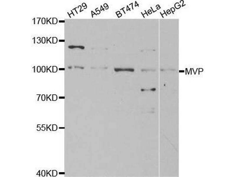 This gene encodes the major component of the vault complex. Vaults are multi-subunit ribonucleoprotein structures that may be involved in nucleo-cytoplasmic transport. The encoded protein may play a role in multiple cellular processes by regulating the MAP kinase, JAK/STAT and phosphoinositide 3-kinase/Akt signaling pathways. The encoded protein also plays a role in multidrug resistance, and expression of this gene may be a prognostic marker for several types of cancer. Alternatively spliced transcript variants have been observed for this gene.,MVP,LRP,VAULT1,Cancer,Drug resistance,Signal Transduction,MVP