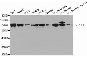 The protein encoded by this gene is an enzyme that contains both hydrolase and aminopeptidase activities. The hydrolase activity is used in the final step of the biosynthesis of leukotriene B4, a proinflammatory mediator. The aminopeptidase activity has been shown to degrade proline-glycine-proline (PGP), a neutrophil chemoattractant and biomarker for chronic obstructive pulmonary disease (COPD). Several transcript variants encoding different isoforms have been found for this gene.,LTA4H,Epigenetics & Nuclear Signaling,RNA Binding,Cancer,Endocrine & Metabolism,Immunology & Inflammation,Cell Intrinsic Innate Immunity Signaling Pathway,LTA4H