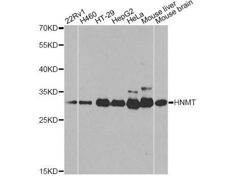 In mammals, histamine is metabolized by two major pathways: N(tau)-methylation via histamine N-methyltransferase and oxidative deamination via diamine oxidase. This gene encodes the first enzyme which is found in the cytosol and uses S-adenosyl-L-methionine as the methyl donor. In the mammalian brain, the neurotransmitter activity of histamine is controlled by N(tau)-methylation as diamine oxidase is not found in the central nervous system. A common genetic polymorphism affects the activity levels of this gene product in red blood cells. Multiple alternatively spliced transcript variants that encode different proteins have been found for this gene.,HNMT,HMT,HNMT-S1,HNMT-S2,MRT51,Epigenetics & Nuclear Signaling,Neuroscience,HNMT