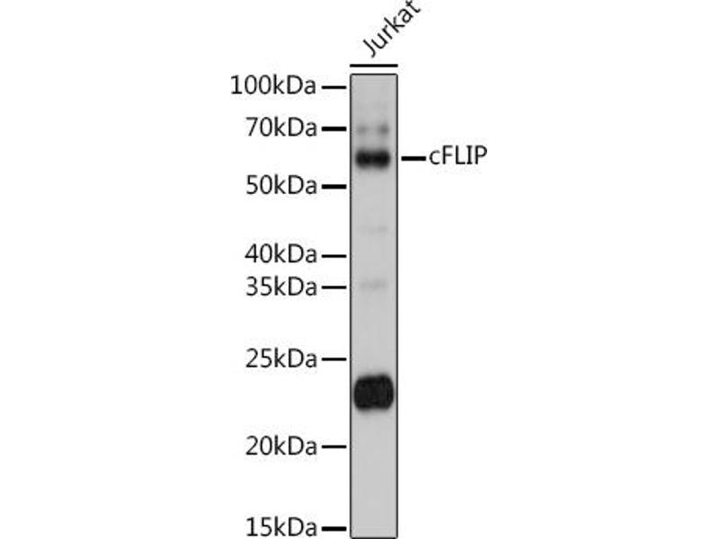 The protein encoded by this gene is a regulator of apoptosis and is structurally similar to caspase-8. However, the encoded protein lacks caspase activity and appears to be itself cleaved into two peptides by caspase-8. Several transcript variants encoding different isoforms have been found for this gene, and partial evidence for several more variants exists.,CFLAR,CASH,CASP8AP1,CLARP,Casper,FLAME,FLAME-1,FLAME1,FLIP,I-FLICE,MRIT,c-FLIP,c-FLIPL,c-FLIPR,c-FLIPS,Cancer,Invasion and Metastasis,Signal Transduction,Cell Biology & Developmental Biology,Apoptosis,Caspases,Inhibition of Apoptosis,Death Receptor Signaling Pathway,Endocrine & Metabolism,CFLAR