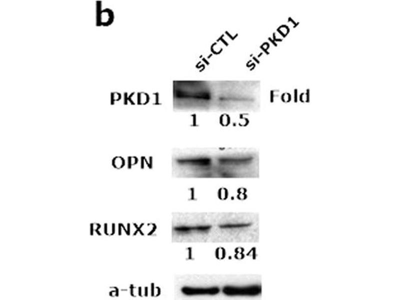 Li, Xu, Xing, Qian, Chen, Gu, Guo, Lai, Zhao, Li, Wang, Wang, Deng: "A Conditional Knockout Mouse Model Reveals a Critical Role of PKD1 in Osteoblast Differentiation and Bone Development." in: Scientific reports, Vol. 7, pp. 40505, (2017) (PubMed).