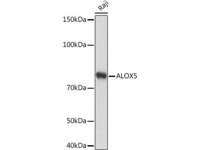 This gene encodes a member of the lipoxygenase gene family and plays a dual role in the synthesis of leukotrienes from arachidonic acid. The encoded protein, which is expressed specifically in bone marrow-derived cells, catalyzes the conversion of arachidonic acid to 5(S)-hydroperoxy-6-trans-8,11,14-cis-eicosatetraenoic acid, and further to the allylic epoxide 5(S)-trans-7,9-trans-11,14-cis-eicosatetrenoic acid (leukotriene A4). Leukotrienes are important mediators of a number of inflammatory and allergic conditions. Mutations in the promoter region of this gene lead to a diminished response to antileukotriene drugs used in the treatment of asthma and may also be associated with atherosclerosis and several cancers. Alternatively spliced transcript variants encoding different isoforms have been found for this gene. [provided by RefSeq, Jan 2012],5-LO, 5-LOX, 5LPG, LOG5,Cancer,Cardiovascular,Cardiovascular diseases,Cardiovascular diseases_Heart disease,Endocrine & Metabolism,Heart,Lipid Metabolism,Protein phosphorylation,Signal Transduction,ALOX5