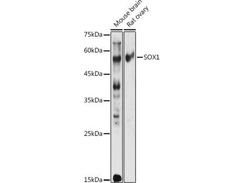 This intronless gene encodes a member of the SOX (SRY-related HMG-box) family of transcription factors involved in the regulation of embryonic development and in the determination of the cell fate. The encoded protein may act as a transcriptional activator after forming a protein complex with other proteins. In mice, a similar protein regulates the gamma-crystallin genes and is essential for lens development.,SOX1,SRY-box 1,Epigenetics & Nuclear Signaling,Transcription Factors,Neuroscience,Stem Cells,Neural Stem Cells,SOX1