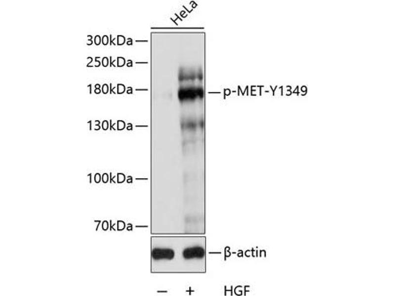 This gene encodes a member of the receptor tyrosine kinase family of proteins and the product of the proto-oncogene MET. The encoded preproprotein is proteolytically processed to generate alpha and beta subunits that are linked via disulfide bonds to form the mature receptor. Further processing of the beta subunit results in the formation of the M10 peptide, which has been shown to reduce lung fibrosis. Binding of its ligand, hepatocyte growth factor, induces dimerization and activation of the receptor, which plays a role in cellular survival, embryogenesis, and cellular migration and invasion. Mutations in this gene are associated with papillary renal cell carcinoma, hepatocellular carcinoma, and various head and neck cancers. Amplification and overexpression of this gene are also associated with multiple human cancers.,MET,AUTS9,DFNB97,HGFR,RCCP2,c-Met,Epigenetics & Nuclear Signaling,Cancer,Signal Transduction,Kinase,Tyrosine kinases,Cell Biology & Developmental Biology,Growth factor,Stem Cells,Protein phosphorylation,MET