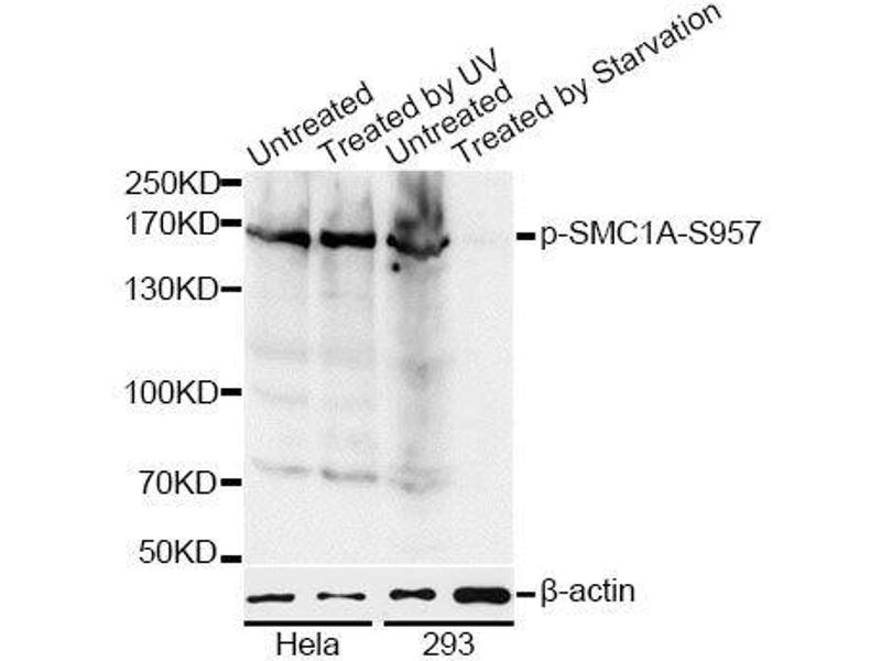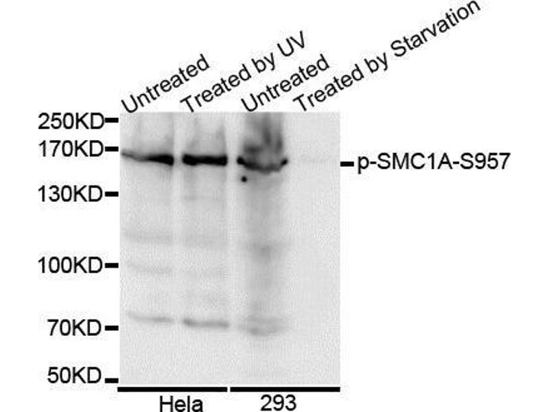 Proper cohesion of sister chromatids is a prerequisite for the correct segregation of chromosomes during cell division. The cohesin multiprotein complex is required for sister chromatid cohesion. This complex is composed partly of two structural maintenance of chromosomes (SMC) proteins, SMC3 and either SMC1B or the protein encoded by this gene. Most of the cohesin complexes dissociate from the chromosomes before mitosis, although those complexes at the kinetochore remain. Therefore, the encoded protein is thought to be an important part of functional kinetochores. In addition, this protein interacts with BRCA1 and is phosphorylated by ATM, indicating a potential role for this protein in DNA repair. This gene, which belongs to the SMC gene family, is located in an area of the X-chromosome that escapes X inactivation. Mutations in this gene result in Cornelia de Lange syndrome. Alternative splicing results in multiple transcript variants encoding different isoforms.,SMC1A,CDLS2,DXS423E,SB1.8,SMC1,SMC1L1,SMC1alpha,SMCB,Epigenetics & Nuclear Signaling,Cell Biology & Developmental Biology,Apoptosis,Cell Cycle,Protein phosphorylation,SMC1A