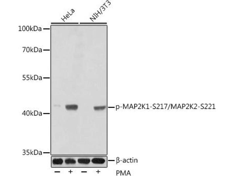 The protein encoded by this gene is a member of the dual specificity protein kinase family, which acts as a mitogen-activated protein (MAP) kinase kinase. MAP kinases, also known as extracellular signal-regulated kinases (ERKs), act as an integration point for multiple biochemical signals. This protein kinase lies upstream of MAP kinases and stimulates the enzymatic activity of MAP kinases upon wide variety of extra- and intracellular signals. As an essential component of MAP kinase signal transduction pathway, this kinase is involved in many cellular processes such as proliferation, differentiation, transcription regulation and development. [provided by RefSeq, Jul 2008],MEK1/MEK2,Protein phosphorylation,Protein phosphorylation,Protein phosphorylation,MAP2K1/MAP2K2