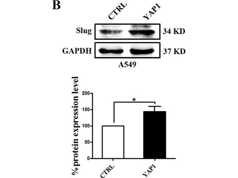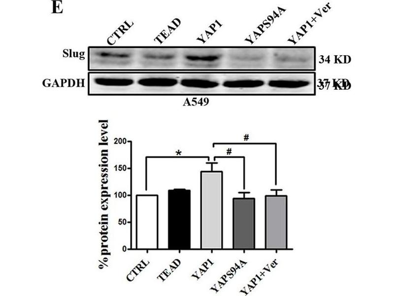 Yu, Chen, Li, Yang, Zhang, Huangfu, Zheng, Zhao, Lv, Hong, Liang, Shan: "YAP1 contributes to NSCLC invasion and migration by promoting Slug transcription via the transcription co-factor TEAD." in: Cell death & disease, Vol. 9, Issue 5, pp. 464, (2018) (PubMed).