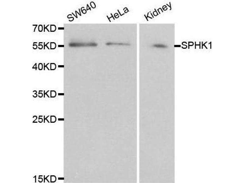 The protein encoded by this gene catalyzes the phosphorylation of sphingosine to form sphingosine-1-phosphate (S1P), a lipid mediator with both intra- and extracellular functions. Intracellularly, S1P regulates proliferation and survival, and extracellularly, it is a ligand for cell surface G protein-coupled receptors. This protein, and its product S1P, play a key role in TNF-alpha signaling and the NF-kappa-B activation pathway important in inflammatory, antiapoptotic, and immune processes. Alternatively spliced transcript variants encoding different isoforms have been found for this gene.,SPHK1,SPHK,Cancer,Signal Transduction,G protein signaling,G-Protein-Coupled Receptors(GPCR),Kinase,Cell Biology & Developmental Biology,Apoptosis,Endocrine & Metabolism,Lipid Metabolism,Cardiovascular,Angiogenesis,SPHK1