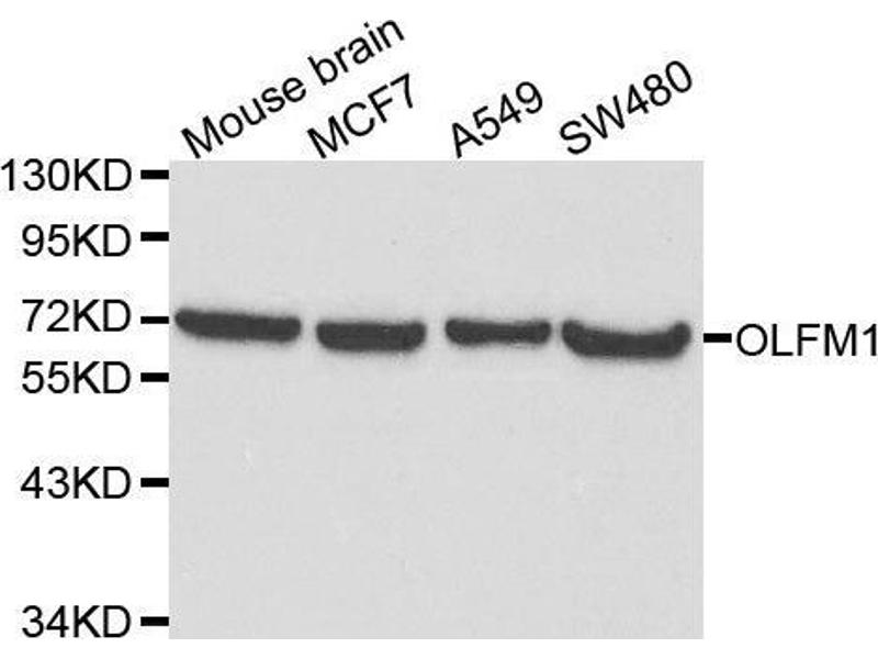 The Rabbit Polyclonal anti-Olfactomedin 1 antibody (ABIN3020820) specifically detects Olfactomedin 1 in WB.