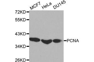 The Rabbit Polyclonal anti-PCNA antibody has been validated for WB, IHC, IF and IP. It is suitable to detect PCNA in samples from Human. There are 3+ publications available.