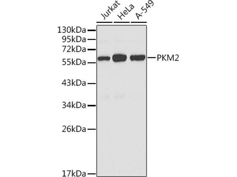 This gene encodes a protein involved in glycolysis. The encoded protein is a pyruvate kinase that catalyzes the transfer of a phosphoryl group from phosphoenolpyruvate to ADP, generating ATP and pyruvate. This protein has been shown to interact with thyroid hormone and may mediate cellular metabolic effects induced by thyroid hormones. This protein has been found to bind Opa protein, a bacterial outer membrane protein involved in gonococcal adherence to and invasion of human cells, suggesting a role of this protein in bacterial pathogenesis. Several alternatively spliced transcript variants encoding a few distinct isoforms have been reported.,CTHBP,HEL-S-30,OIP3,PK3,PKM2,TCB,THBP1,PKM,Epigenetics & Nuclear Signaling,RNA Binding,Cancer,Tumor biomarkers,Signal Transduction,Endocrine & Metabolism,Carbohydrate metabolism,Warburg Effect,PKM
