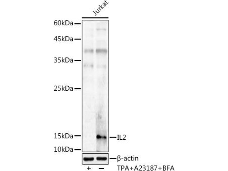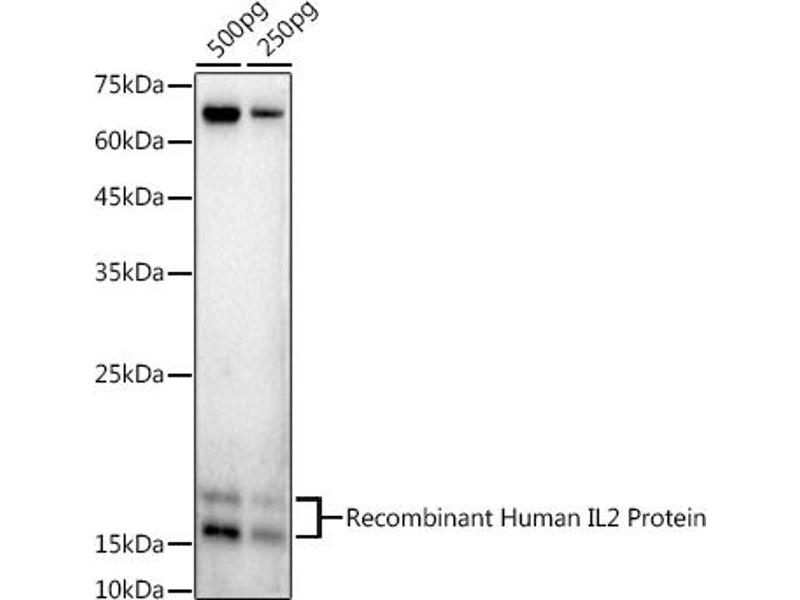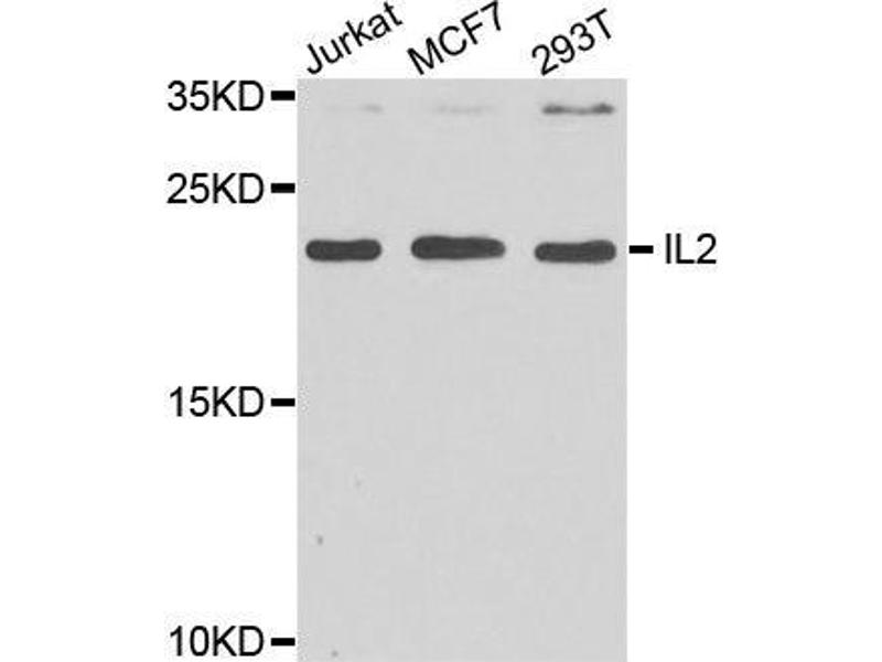 The protein encoded by this gene is a secreted cytokine that is important for the proliferation of T and B lymphocytes. The receptor of this cytokine is a heterotrimeric protein complex whose gamma chain is also shared by interleukin 4 (IL4) and interleukin 7 (IL7). The expression of this gene in mature thymocytes is monoallelic, which represents an unusual regulatory mode for controlling the precise expression of a single gene. The targeted disruption of a similar gene in mice leads to ulcerative colitis-like disease, which suggests an essential role of this gene in the immune response to antigenic stimuli.,IL2,IL-2,TCGF,lymphokine,Cell Biology & Developmental Biology,Apoptosis,Growth factor,Immunology & Inflammation,Cytokines,Interleukins,Cell Intrinsic Innate Immunity Signaling Pathway,IL2