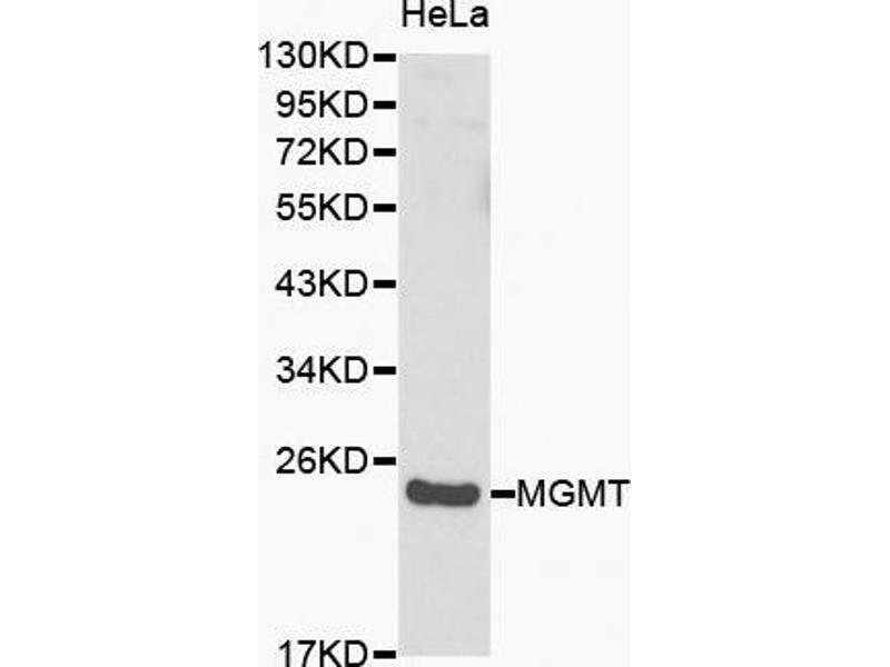 This anti-MGMT antibody is a Rabbit Polyclonal antibody detecting MGMT in WB. Suitable for Human. This Primary Antibody has been cited in 2+ publications.