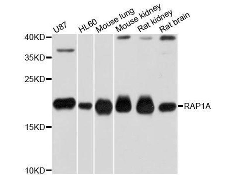 - A synthetic peptide corresponding to a sequence within amino acids 50-150 of human Rap1A (NP_002875.1).