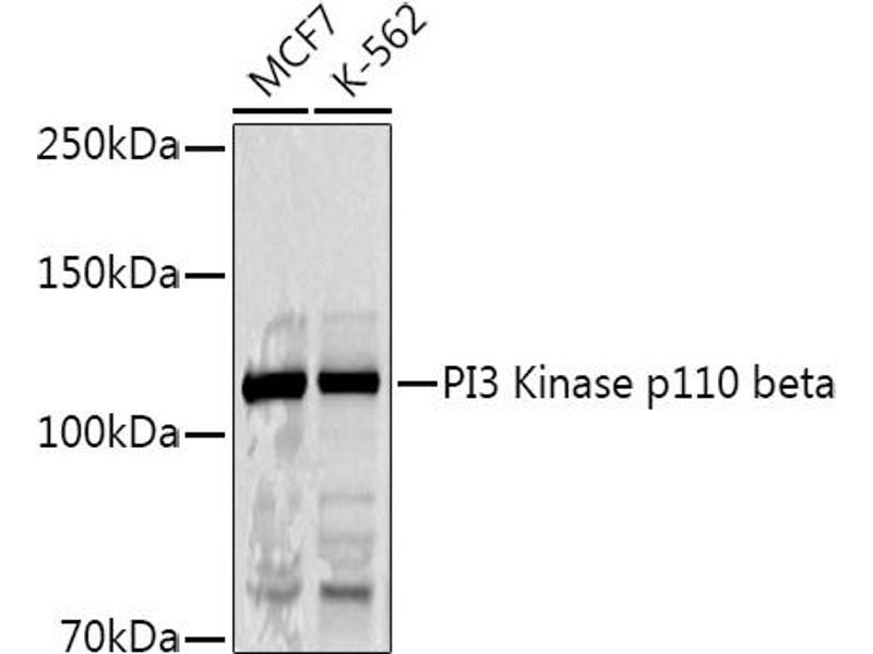This gene encodes an isoform of the catalytic subunit of phosphoinositide 3-kinase (PI3K). These kinases are important in signaling pathways involving receptors on the outer membrane of eukaryotic cells and are named for their catalytic subunit. The encoded protein is the catalytic subunit for PI3Kbeta (PI3KB). PI3KB has been shown to be part of the activation pathway in neutrophils which have bound immune complexes at sites of injury or infection. Alternative splicing results in multiple transcript variants.,PIK3CB,P110BETA,PI3K,PI3KBETA,PIK3C1,Epigenetics & Nuclear Signaling,Translation Control,Regulation of eIF4 and p70 S6 Kinase,Signal Transduction,Kinase,PI3K-Akt Signaling Pathway,mTOR Signaling Pathway,Protein Kinase C Signaling Pathway,ErbB-HER Signaling Pathway,MAPK-Erk Signaling Pathway,MAPK-JNK Signaling Pathway,Cell Biology & Developmental Biology,Apoptosis,Mitochondrial Control of Apoptosis,Inhibition of Apoptosis,Cell Cycle,Cell Adhesion,Cytoskeleton,Microtubules,Actins,TGF-b-Smad Signaling Pathway,ESC Pluripotency and Differentiation,Endocrine & Metabolism,Lipid Metabolism,AMPK Signaling Pathway,Warburg Effect,Immunology & Inflammation,B Cell Receptor Signaling Pathway,T Cell Receptor Signaling Pathway,IL-6 Receptor Signaling Pathway,NF-kB Signaling Pathway,Toll-like Receptor Signaling Pathway,Cell Intrinsic Innate Immunity Signaling Pathway,TLR Signaling,Cardiovascular,Angiogenesis,PI3Ks and related,PIK3CB