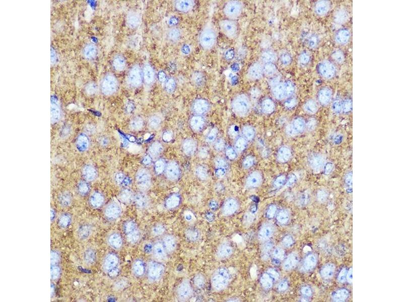 - Synaptic vesicle membrane docking and fusion is mediated by SNAREs (soluble N-ethylmaleimide-sensitive factor attachment protein receptors) located on the vesicle membrane (v-SNAREs) and the target membrane (t-SNAREs). The assembled v-SNARE/t-SNARE complex consists of a bundle of four helices, one of which is supplied by v-SNARE and the other three by t-SNARE. For t-SNAREs on the plasma membrane, the protein syntaxin supplies one helix and the protein encoded by this gene contributes the other two. Therefore, this gene product is a presynaptic plasma membrane protein involved in the regulation of neurotransmitter release. Two alternative transcript variants encoding different protein isoforms have been described for this gene.,SNAP25,CMS18,RIC-4,RIC4,SEC9,SNAP,SNAP-25,SUP,bA416N4.2,dJ1068F16.2,Cancer,Signal Transduction,Endocrine & Metabolism,Neuroscience,Cell Type Marker,Neuron marker,Synapse marker,SNAP25