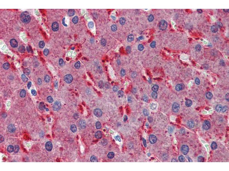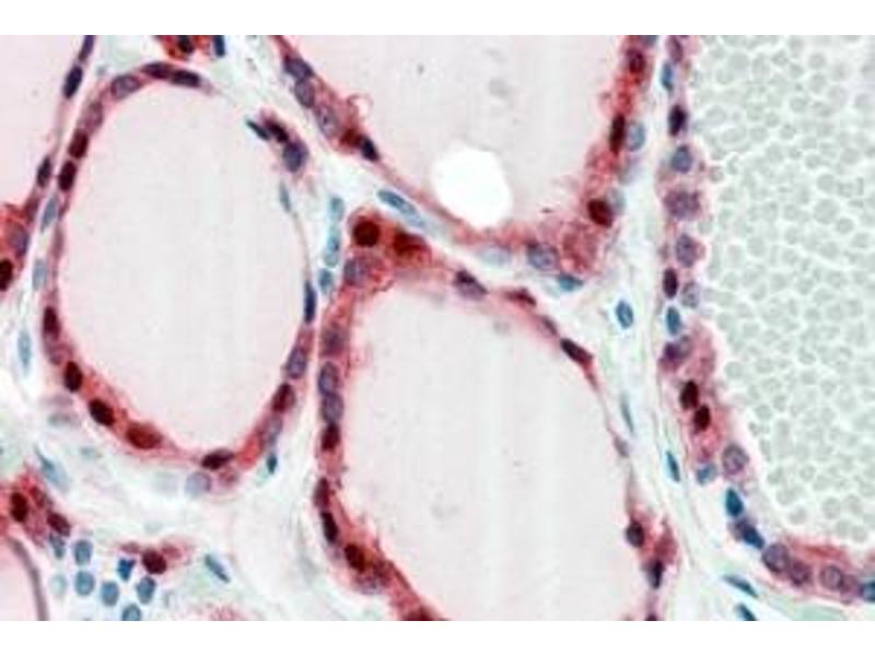 Immunohistochemistry: In paraffin embedded Human Thyroid Gland shows cytoplasm and membranous staining in epithelial cells of the follicles. Recommended concentration: 2-5 μg/mL. Paraffin embedded Human Liver. Recommended concentration: 2.5 μg/mL.