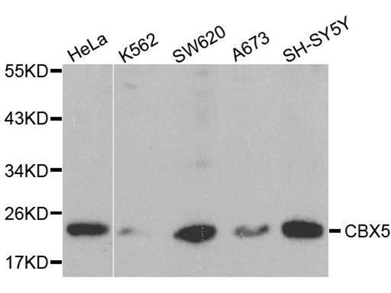 The Rabbit Polyclonal anti-CBX5 antibody has been validated for WB, IF, IP and ChIP. It is suitable to detect CBX5 in samples from Human. There is 1 publication available.