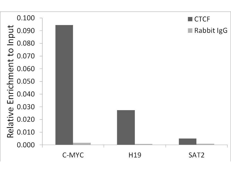 - This gene is a member of the BORIS + CTCF gene family and encodes a transcriptional regulator protein with 11 highly conserved zinc finger (ZF) domains. This nuclear protein is able to use different combinations of the ZF domains to bind different DNA target sequences and proteins. Depending upon the context of the site, the protein can bind a histone acetyltransferase (HAT)-containing complex and function as a transcriptional activator or bind a histone deacetylase (HDAC)-containing complex and function as a transcriptional repressor. If the protein is bound to a transcriptional insulator element, it can block communication between enhancers and upstream promoters, thereby regulating imprinted expression. Mutations in this gene have been associated with invasive breast cancers, prostate cancers, and Wilms' tumors. Alternatively spliced transcript variants encoding different isoforms have been found for this gene.,CTCF,MRD21,CTCF,Epigenetics & Nuclear Signaling,CTCF