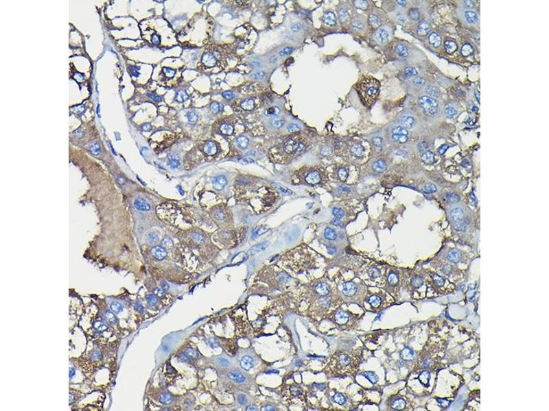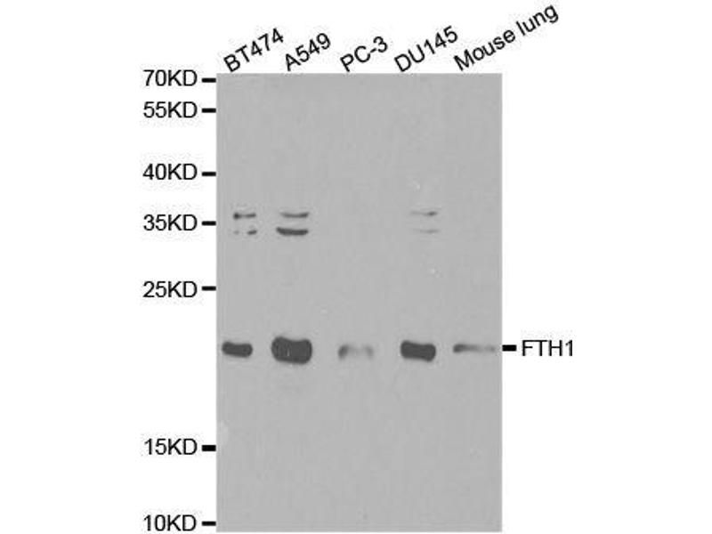 This gene encodes the heavy subunit of ferritin, the major intracellular iron storage protein in prokaryotes and eukaryotes. It is composed of 24 subunits of the heavy and light ferritin chains. Variation in ferritin subunit composition may affect the rates of iron uptake and release in different tissues. A major function of ferritin is the storage of iron in a soluble and nontoxic state. Defects in ferritin proteins are associated with several neurodegenerative diseases. This gene has multiple pseudogenes. Several alternatively spliced transcript variants have been observed, but their biological validity has not been determined.,FHC,FTH,FTHL6,HFE5,PIG15,PLIF,Ferritin,FTH1,Cancer,Signal Transduction,Endocrine & Metabolism,Mitochondrial metabolism,Mitochondrial markers,Neuroscience,Neurodegenerative Diseases,Amyloid Plaque and Neurofibrillary Tangle Formation in Alzheimer's Disease,Cardiovascular,Blood,Serum Proteins,FTH1