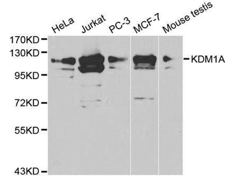 This gene encodes a nuclear protein containing a SWIRM domain, a FAD-binding motif, and an amine oxidase domain. This protein is a component of several histone deacetylase complexes, though it silences genes by functioning as a histone demethylase. Alternative splicing results in multiple transcript variants.,KDM1A,AOF2,BHC110,CPRF,KDM1,LSD1,KDM1,Epigenetics & Nuclear Signaling,Chromatin Modifying Enzymes,Demethylation,Transcription Factors,KDM1A