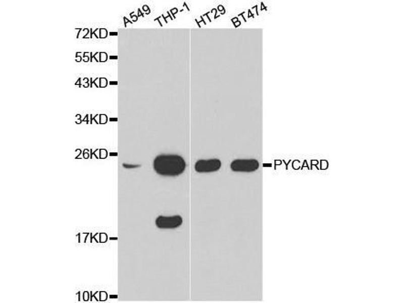 The Rabbit Polyclonal anti-PYCARD antibody has been validated for WB and IF. It is suitable to detect PYCARD in samples from Human. There is 1 publication available.