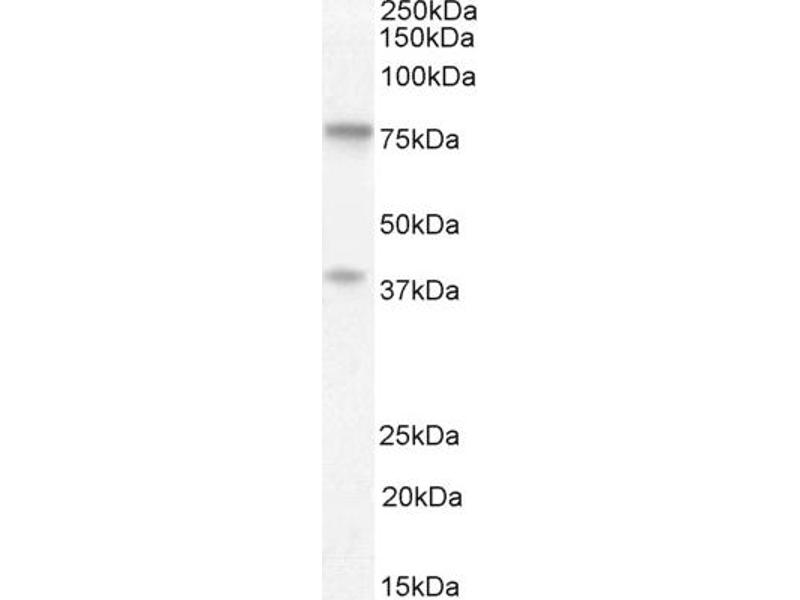 Western Blot: Approx. 80 kDa bands observed in Human Cerebellum lysates (calculated MW of 81.0 kDa according to NP_060050.2). An additional band of unknown identity was also consistently observed at 38 kDa. Recommended concentration: 0.5-2 μg/mL. Primary i