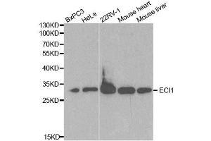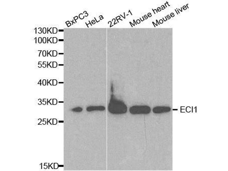 This gene encodes a member of the hydratase/isomerase superfamily. The protein encoded is a key mitochondrial enzyme involved in beta-oxidation of unsaturated fatty acids. It catalyzes the transformation of 3-cis and 3-trans-enoyl-CoA esters arising during the stepwise degradation of cis-, mono-, and polyunsaturated fatty acids to the 2-trans-enoyl-CoA intermediates. Alternatively spliced transcript variants have been described.,ECI1,DCI,Cancer,Signal Transduction,Endocrine & Metabolism,Mitochondrial metabolism,Mitochondrial markers,Lipid Metabolism,Cardiovascular,Lipids,Fatty Acids,ECI1