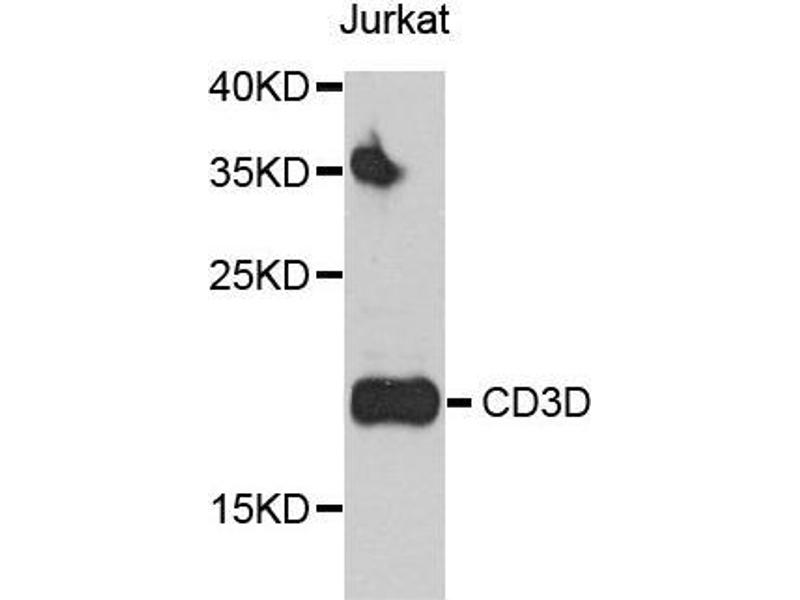 The protein encoded by this gene is part of the T-cell receptor/CD3 complex (TCR/CD3 complex) and is involved in T-cell development and signal transduction. The encoded membrane protein represents the delta subunit of the CD3 complex, and along with four other CD3 subunits, binds either TCR alpha/beta or TCR gamma/delta to form the TCR/CD3 complex on the surface of T-cells. Defects in this gene are a cause of severe combined immunodeficiency autosomal recessive T-cell-negative/B-cell-positive/NK-cell-positive (SCIDBNK). Two transcript variants encoding different isoforms have been found for this gene. Other variants may also exist, but the full-length natures of their transcripts has yet to be defined.,CD3D,CD3-DELTA,IMD19,T3D,Cancer,Tumor immunology,Tumor-associated antigens,Immunology & Inflammation,CD markers,T Cell Receptor Signaling Pathway,Stem Cells,Hematopoietic Progenitors,CD3D