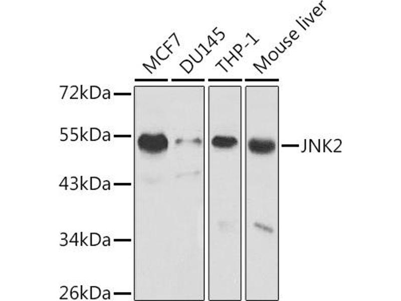 The protein encoded by this gene is a member of the MAP kinase family. MAP kinases act as an integration point for multiple biochemical signals, and are involved in a wide variety of cellular processes such as proliferation, differentiation, transcription regulation and development. This kinase targets specific transcription factors, and thus mediates immediate-early gene expression in response to various cell stimuli. It is most closely related to MAPK8, both of which are involved in UV radiation induced apoptosis, thought to be related to the cytochrome c-mediated cell death pathway. This gene and MAPK8 are also known as c-Jun N-terminal kinases. This kinase blocks the ubiquitination of tumor suppressor p53, and thus it increases the stability of p53 in nonstressed cells. Studies of this gene's mouse counterpart suggest a key role in T-cell differentiation. Several alternatively spliced transcript variants encoding distinct isoforms have been reported.,MAPK9,JNK-55,JNK2,JNK2A,JNK2ALPHA,JNK2B,JNK2BETA,PRKM9,SAPK,SAPK1a,p54a,p54aSAPK,Cancer,Tumor biomarkers,Signal Transduction,Kinase,Serine/threonine kinases,ErbB-HER Signaling Pathway,MAPK-JNK Signaling Pathway,Cell Biology & Developmental Biology,Apoptosis,Mitochondrial Control of Apoptosis,Inhibition of Apoptosis,Death Receptor Signaling Pathway,TGF-b-Smad Signaling Pathway,Endocrine & Metabolism,Insulin Receptor Signaling Pathway,Immunology & Inflammation,B Cell Receptor Signaling Pathway,T Cell Receptor Signaling Pathway,NF-kB Signaling Pathway,Toll-like Receptor Signaling Pathway,Cell Intrinsic Innate Immunity Signaling Pathway,TLR Signaling,Neuroscience,Neurodegenerative Diseases,Dopamine Signaling in Parkinson's Disease,MAPK9