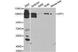 This gene encodes a protein that is part of a post-splicing multiprotein complex involved in both mRNA nuclear export and mRNA surveillance. mRNA surveillance detects exported mRNAs with truncated open reading frames and initiates nonsense-mediated mRNA decay (NMD). When translation ends upstream from the last exon-exon junction, this triggers NMD to degrade mRNAs containing premature stop codons. This protein is located only in the cytoplasm. When translation ends, it interacts with the protein that is a functional homolog of yeast Upf2p to trigger mRNA decapping. Use of multiple polyadenylation sites has been noted for this gene. Alternative splicing results in multiple transcript variants.,UPF1,HUPF1,NORF1,RENT1,pNORF1,smg-2,Epigenetics & Nuclear Signaling,RNA Binding,Cell Biology & Developmental Biology,Apoptosis,UPF1