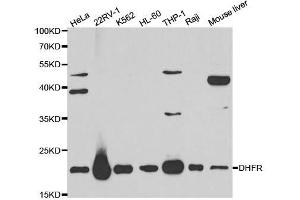 Dihydrofolate reductase converts dihydrofolate into tetrahydrofolate, a methyl group shuttle required for the de novo synthesis of purines, thymidylic acid, and certain amino acids. While the functional dihydrofolate reductase gene has been mapped to chromosome 5, multiple intronless processed pseudogenes or dihydrofolate reductase-like genes have been identified on separate chromosomes. Dihydrofolate reductase deficiency has been linked to megaloblastic anemia. Several transcript variants encoding different isoforms have been found for this gene.,DHFR,DHFRP1,DYR,Cancer,Signal Transduction,Cell Biology & Developmental Biology,Endocrine & Metabolism,Amino acid metabolism,Nucleotide metabolism,DHFR