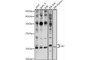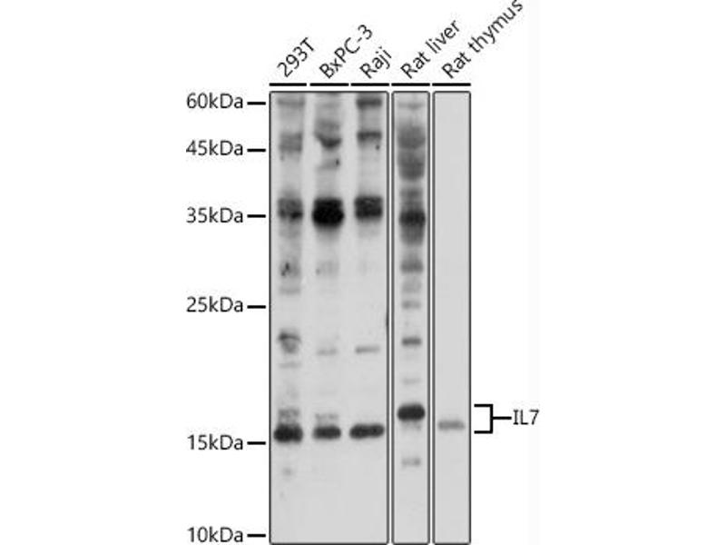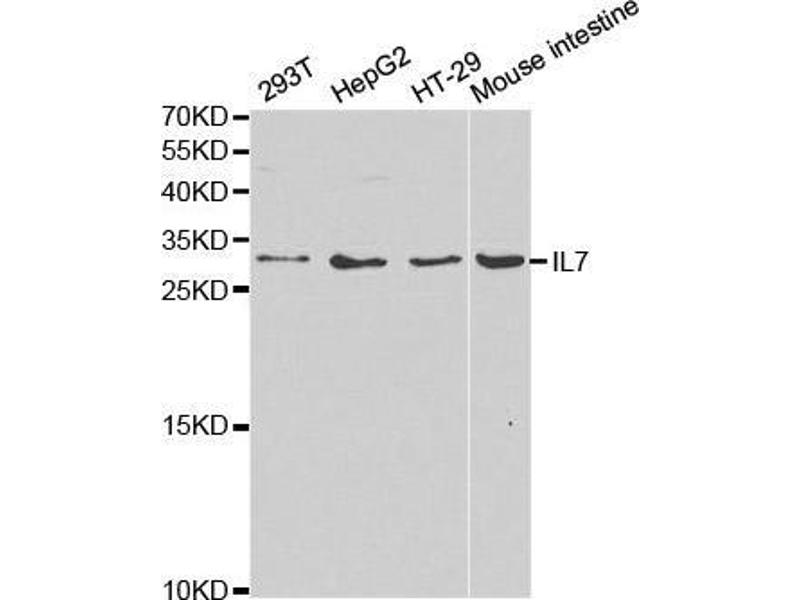 The protein encoded by this gene is a cytokine important for B and T cell development. This cytokine and the hepatocyte growth factor (HGF) form a heterodimer that functions as a pre-pro-B cell growth-stimulating factor. This cytokine is found to be a cofactor for V(D)J rearrangement of the T cell receptor beta (TCRB) during early T cell development. This cytokine can be produced locally by intestinal epithelial and epithelial goblet cells, and may serve as a regulatory factor for intestinal mucosal lymphocytes. Knockout studies in mice suggested that this cytokine plays an essential role in lymphoid cell survival. Alternative splicing results in multiple transcript variants encoding distinct isoforms. Additional splice variants have been described but their presence in normal tissues has not been confirmed.,IL7,IL-7,Cell Biology & Developmental Biology,Apoptosis,Growth factor,Immunology & Inflammation,Cytokines,Interleukins,Cell Intrinsic Innate Immunity Signaling Pathway,IL7