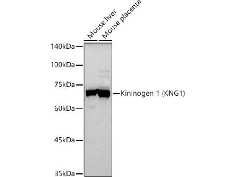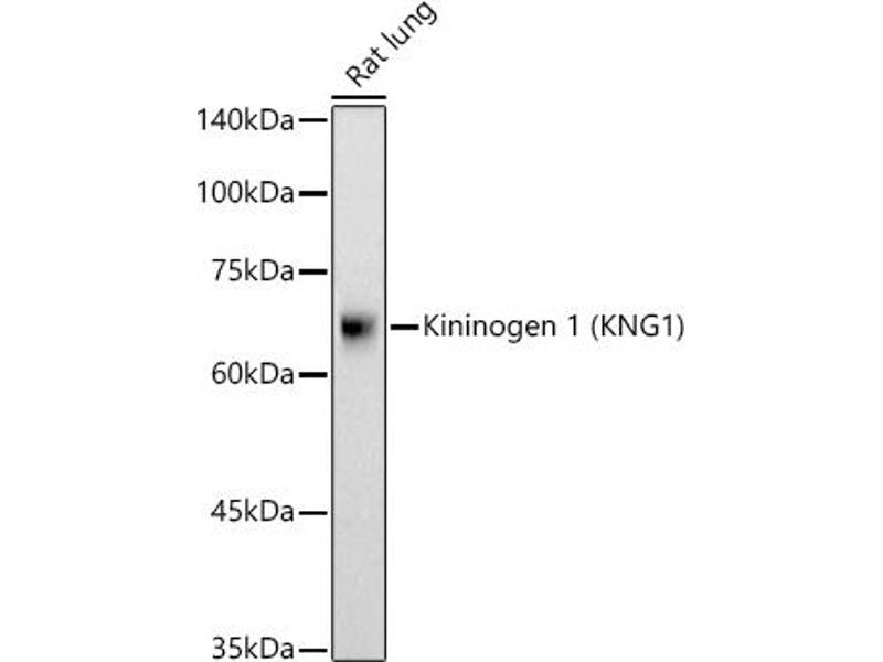 This gene uses alternative splicing to generate two different proteins- high molecular weight kininogen (HMWK) and low molecular weight kininogen (LMWK). HMWK is essential for blood coagulation and assembly of the kallikrein-kinin system. Also, bradykinin, a peptide causing numerous physiological effects, is released from HMWK. Bradykinin also functions as an antimicrobial peptide with antibacterial and antifungal activity. In contrast to HMWK, LMWK is not involved in blood coagulation. Three transcript variants encoding different isoforms have been found for this gene.,KNG1,BDK,BK,KNG,Signal Transduction,G protein signaling,G-Protein-Coupled Receptors(GPCR),Cell Biology & Developmental Biology,Apoptosis,Cardiovascular,Blood,KNG1