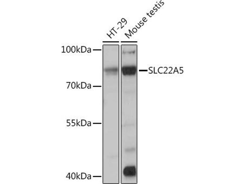 Polyspecific organic cation transporters in the liver, kidney, intestine, and other organs are critical for elimination of many endogenous small organic cations as well as a wide array of drugs and environmental toxins. The encoded protein is a plasma integral membrane protein which functions both as an organic cation transporter and as a sodium-dependent high affinity carnitine transporter. The encoded protein is involved in the active cellular uptake of carnitine. Mutations in this gene are the cause of systemic primary carnitine deficiency (CDSP), an autosomal recessive disorder manifested early in life by hypoketotic hypoglycemia and acute metabolic decompensation, and later in life by skeletal myopathy or cardiomyopathy. Alternative splicing of this gene results in multiple transcript variants.,SLC22A5,CDSP,OCTN2,Cancer,Signal Transduction,Endocrine & Metabolism,SLC22A5