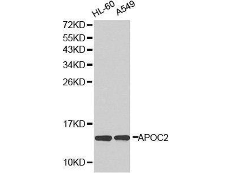 This gene encodes a lipid-binding protein belonging to the apolipoprotein gene family. The protein is secreted in plasma where it is a component of very low density lipoprotein. This protein activates the enzyme lipoprotein lipase, which hydrolyzes triglycerides and thus provides free fatty acids for cells. Mutations in this gene cause hyperlipoproteinemia type IB, characterized by hypertriglyceridemia, xanthomas, and increased risk of pancreatitis and early atherosclerosis. This gene is present in a cluster with other related apolipoprotein genes on chromosome 19. Naturally occurring read-through transcription exists between this gene and the neighboring upstream apolipoprotein C-IV (APOC4) gene.,APOC2,APO-CII,APOC-II,Cancer,Signal Transduction,Endocrine & Metabolism,Lipid Metabolism,Cardiovascular,Heart,Lipids,Lipoproteins/Apolipoproteins,Cardiovascular diseases,Heart disease,APOC2
