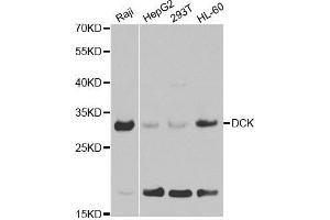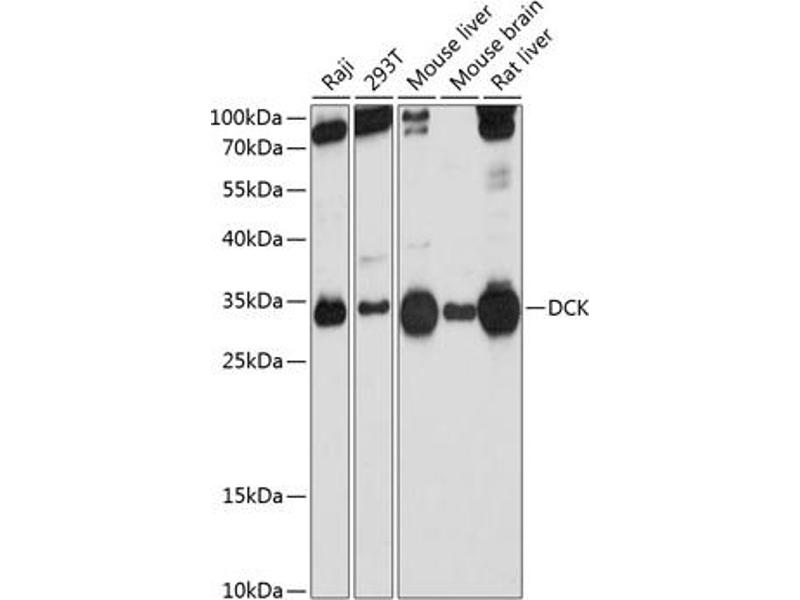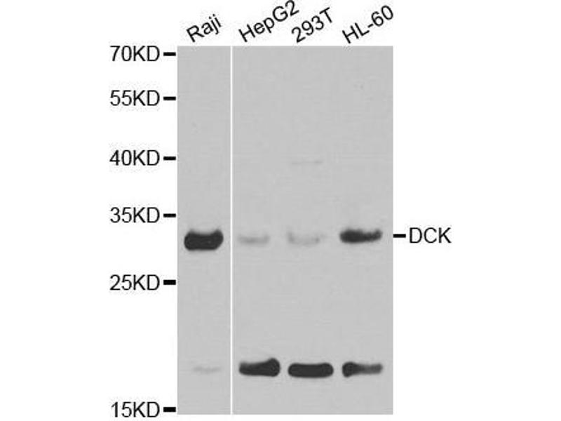 Deoxycytidine kinase (DCK) is required for the phosphorylation of several deoxyribonucleosides and their nucleoside analogs. Deficiency of DCK is associated with resistance to antiviral and anticancer chemotherapeutic agents. Conversely, increased deoxycytidine kinase activity is associated with increased activation of these compounds to cytotoxic nucleoside triphosphate derivatives. DCK is clinically important because of its relationship to drug resistance and sensitivity.,DCK,Cancer,Signal Transduction,Kinase,Cell Biology & Developmental Biology,Cell Cycle,DCK