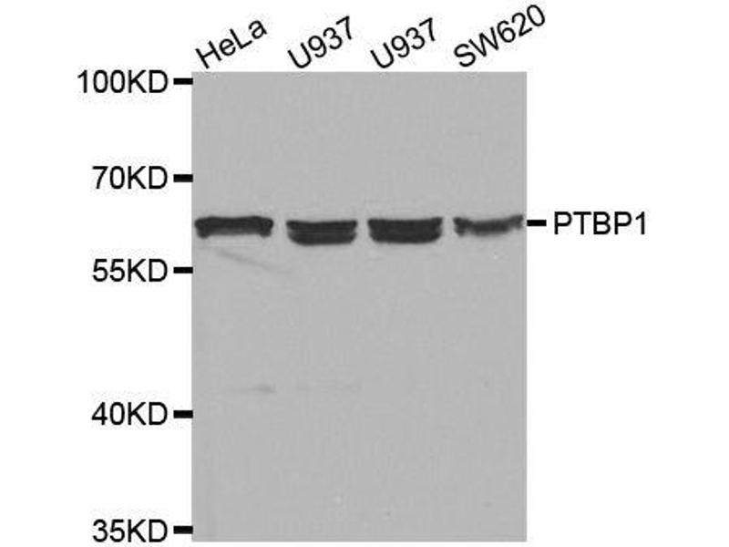 This anti-PTBP1 antibody is a Rabbit Polyclonal antibody detecting PTBP1 in WB, IHC and IF. Suitable for Human. This Primary Antibody has been cited in 1 publication.