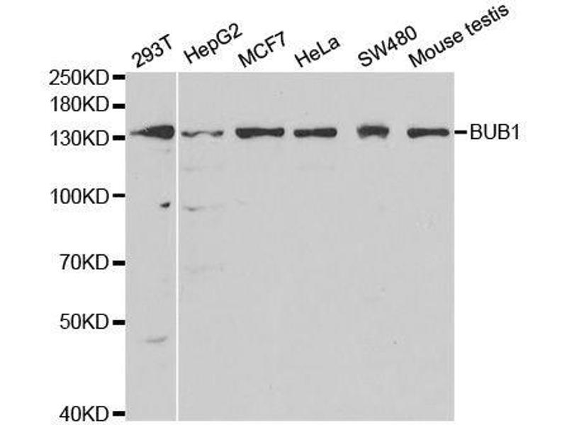 This gene encodes a serine/threonine-protein kinase that play a central role in mitosis. The encoded protein functions in part by phosphorylating members of the mitotic checkpoint complex and activating the spindle checkpoint. This protein also plays a role in inhibiting the activation of the anaphase promoting complex/cyclosome. This protein may also function in the DNA damage response. Mutations in this gene have been associated with aneuploidy and several forms of cancer. Alternate splicing results in multiple transcript variants.,BUB1,BUB1A,BUB1L,hBUB1,Cancer,Signal Transduction,Kinase,MAPK-Erk Signaling Pathway,Cell Biology & Developmental Biology,Cell Cycle,Centromere,BUB1