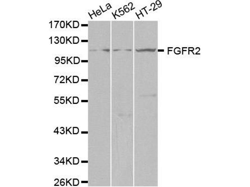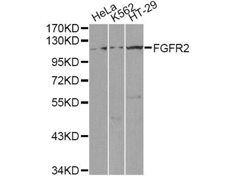 The Rabbit Polyclonal anti-FGFR2 antibody has been validated for IHC. It is suitable to detect FGFR2 in samples from Human.