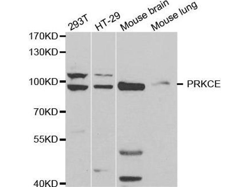 The Rabbit Polyclonal anti-PKC epsilon antibody has been validated for WB and IHC. It is suitable to detect PKC epsilon in samples from Human.