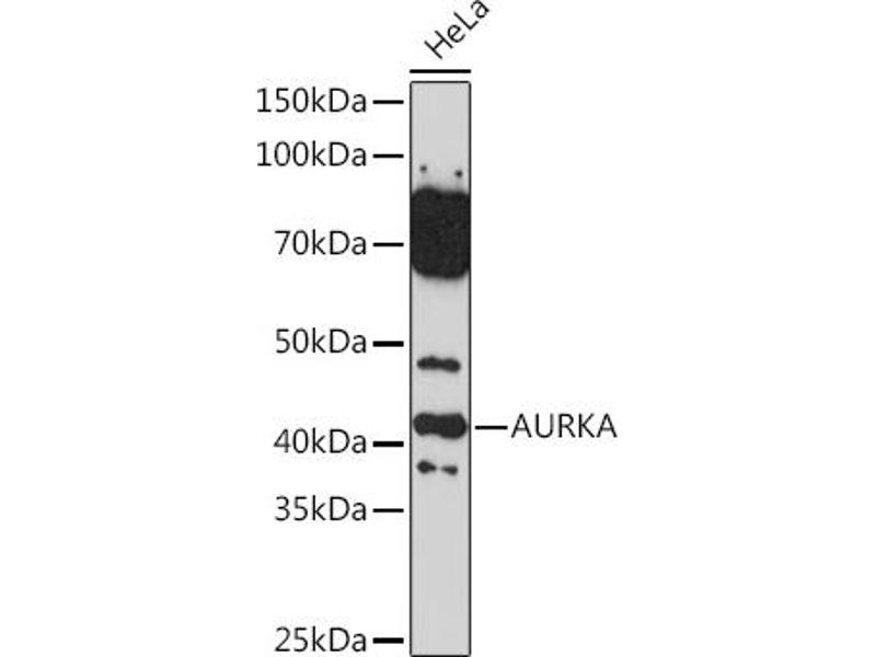 The protein encoded by this gene is a cell cycle-regulated kinase that appears to be involved in microtubule formation and/or stabilization at the spindle pole during chromosome segregation. The encoded protein is found at the centrosome in interphase cells and at the spindle poles in mitosis. This gene may play a role in tumor development and progression. A processed pseudogene of this gene has been found on chromosome 1, and an unprocessed pseudogene has been found on chromosome 10. Multiple transcript variants encoding the same protein have been found for this gene.,AURKA,AIK,ARK1,AURA,BTAK,PPP1R47,STK15,STK6,STK7,Epigenetics & Nuclear Signaling,Cancer,Tumor biomarkers,Signal Transduction,Kinase,Serine/threonine kinases,Cell Biology & Developmental Biology,Cell Cycle,Centrosome,G2/M DNA Damage Checkpoint,AURKA