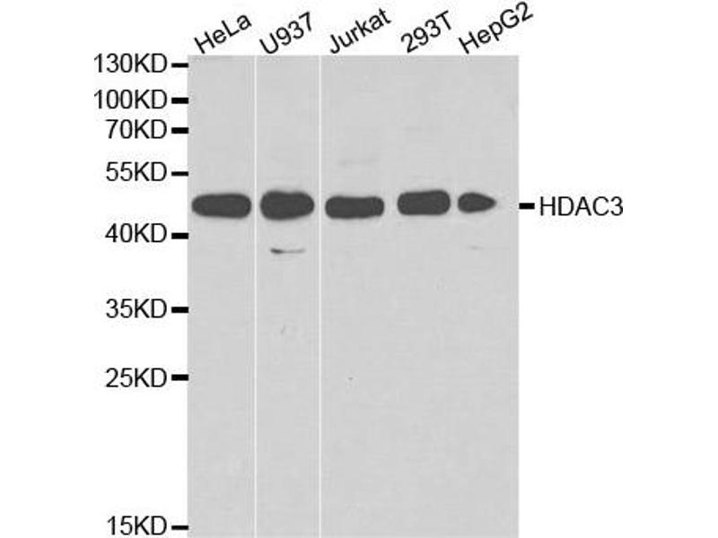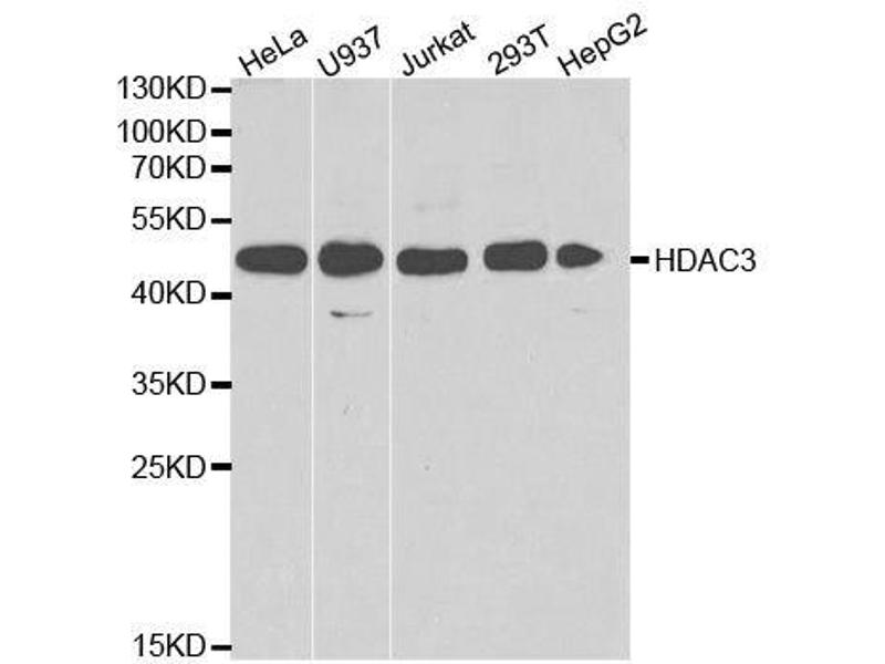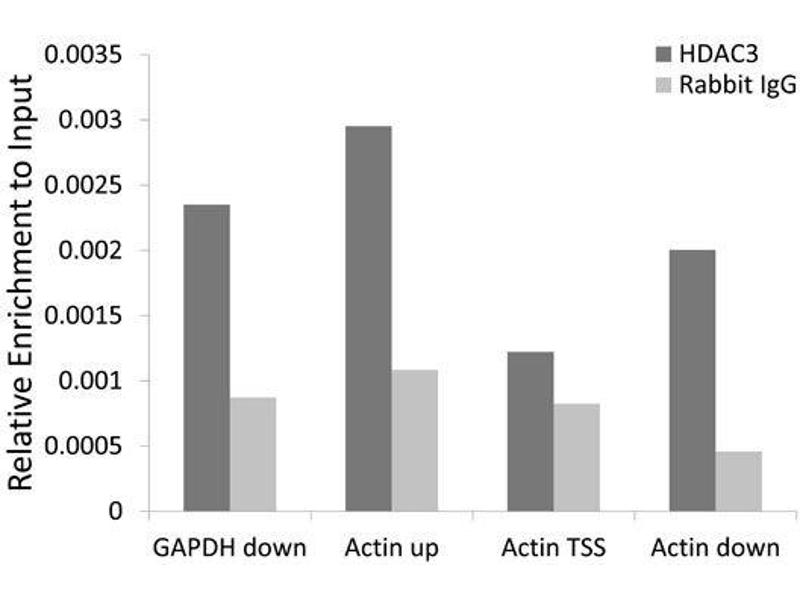 Histones play a critical role in transcriptional regulation, cell cycle progression, and developmental events. Histone acetylation/deacetylation alters chromosome structure and affects transcription factor access to DNA. The protein encoded by this gene belongs to the histone deacetylase/acuc/apha family. It has histone deacetylase activity and represses transcription when tethered to a promoter. It may participate in the regulation of transcription through its binding with the zinc-finger transcription factor YY1. This protein can also down-regulate p53 function and thus modulate cell growth and apoptosis. This gene is regarded as a potential tumor suppressor gene.,HD3,RPD3,RPD3-2,HDAC3,Epigenetics & Nuclear Signaling,Nuclear Receptor Signaling,Cancer,Tumor suppressors,Signal Transduction,Cell Biology & Developmental Biology,Apoptosis,Cell Cycle,G1/S Checkpoint,Notch Signaling Pathway,Wnt/β-Catenin Signaling Pathway,Endocrine & Metabolism,Lipid Metabolism,Immunology & Inflammation,NF-kB Signaling Pathway,Stem Cells,Cardiovascular,Heart,Hypertrophy,Lipids,HDAC3