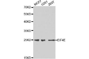 The Rabbit Polyclonal anti-EIF4E antibody has been validated for WB, IHC, IF and IP. It is suitable to detect EIF4E in samples from Human. There are 2+ publications available.