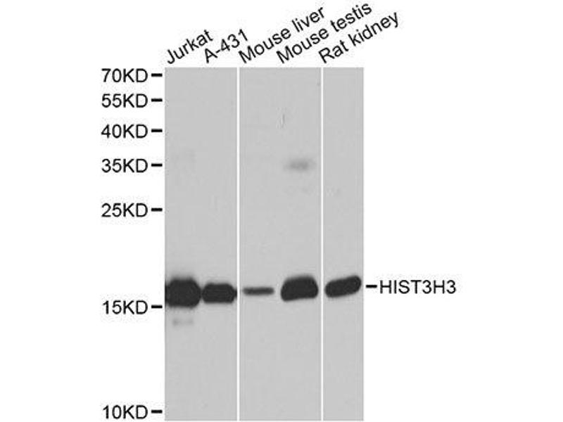 - A synthetic peptide corresponding to a sequence within amino acids 50 to the C-terminus of human HIST3H3 (NP_003484.1).